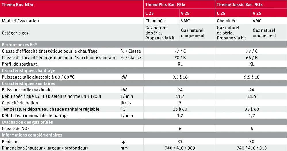 Selon votre besoin en eau chaude, la gamme possède deux modèles : ThermaClassic Bas-NOx & ThermaPlus Bas-NOx